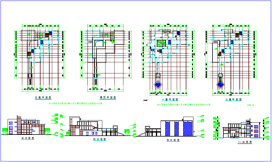 Resettlement area column view with plan,elevation and roof plan dwg file in floor