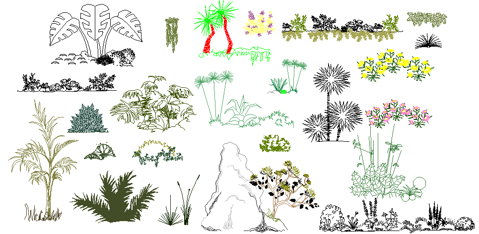 Common tree and plant blocks dwg file Common tree and plant blocks that includes different kind of trees and plants in different sizes and types of common tree and plants.