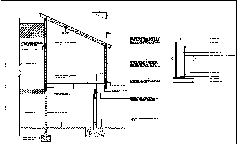 Wall section detail with foundation details and floor divided naming all of the material, with dimension details