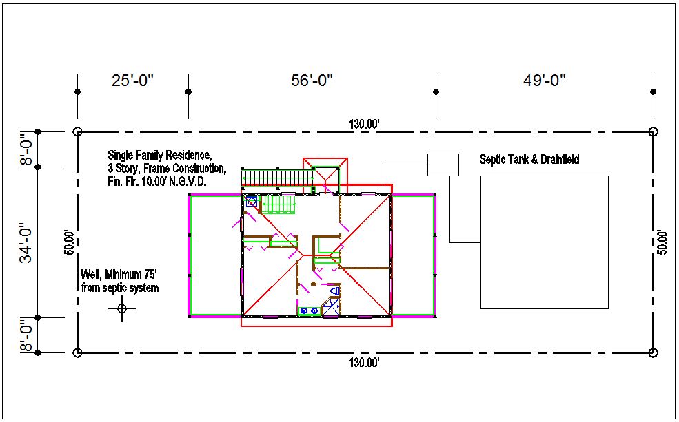 House top view detail dwg file, House top view and design plan layout view with dimension detail, septic tank system, roof floor projection view