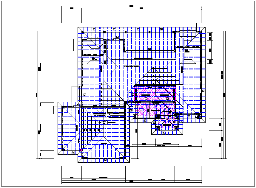 House roof plan view with foundations of column plan layout detail dwg file, existing flat roof plan view detail with specification detail, dimension detail of roof plan layout detailing, roof beam size and dimension detail, anchoring detail
