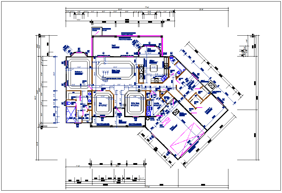 Detailed Bungalow House Floor Plan DWG Drawing Layout
