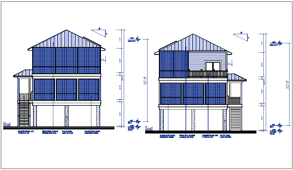 House elevation view detail dwg file, Residential house elevation view detail with specification detail, door window elevation view detail specification, right elevation and left elevation view detail, dimension detail etc