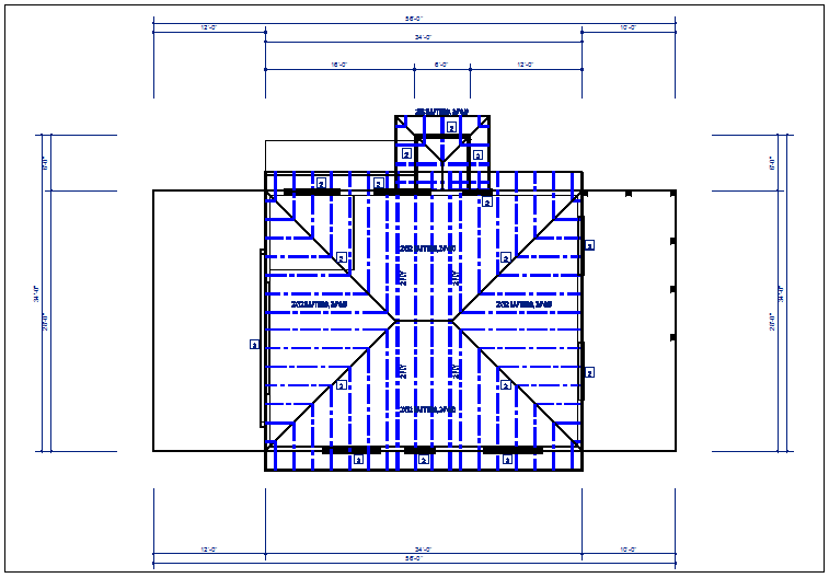 House roof top view detail dwg file, House roof top view detail and design plan layout view with dimensions detail, column foundation plan layout view, roof rafter specification, typical wooden truss etc