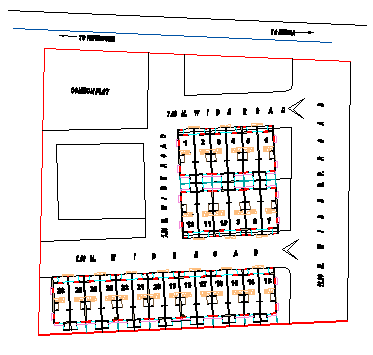 Here the Site plan design drawing single family residential house with common plot road mentioned and 26 numbers house in this society design drawing.