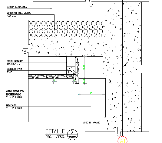 Wooden ceiling finishing details aislasion lana mineral, refill metallic, wooden frame, top view and much more of wooden ceiling finishing details.