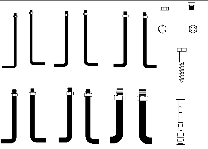 Common used screw and bolts blocks dwg file that includes a detailed view of different kind of shoes in different sizes and designs.