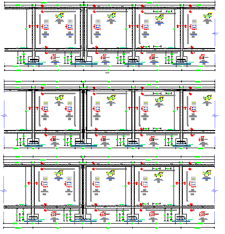 Multi-flooring school building floor plan details that includes a detailed view of main entry gate, class room, staff room, professor room, toilets for students, toilets for teachers, library, sports ground, play area and much more of school floor plan details.