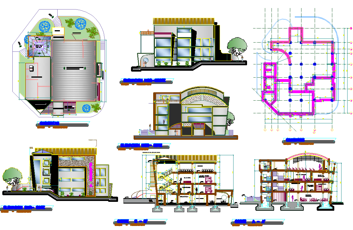 Office building plan detail view dwg file, Office building plan detail view and design plan layout detail with specification detail, dimensions detail, elevation and side elevation view, section view and side section view detail, foundation plan layout detail etc