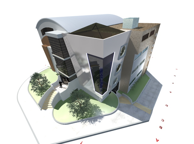 3d view of high rise building skp file, 3d view of high rise building, exterior elevation view, high rise 3d building
