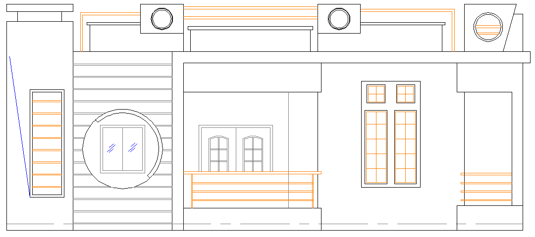 elevation of a bungalow dwg file, here there is 2d elevation of a bungalow, modern bungalow design in auto cad format