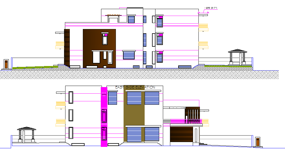 elevation of a bungalow dwg file, this auto cad file contains elevation of a bungalow, modern bungalow design, posh design, luxurious design etc