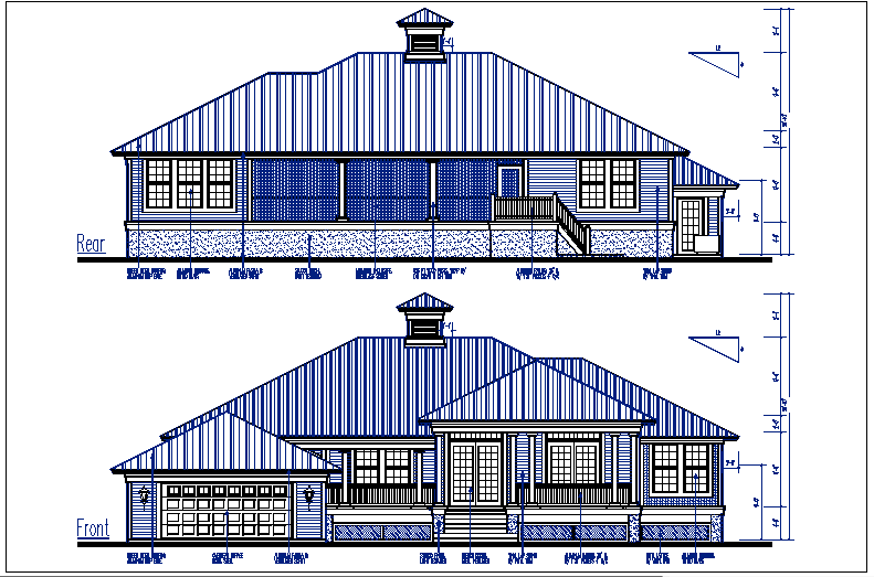 plan elevation view detail dwg file, plan elevation view detail with specification detail,naming door window and garage door elevation view detail specification, front elevation and rear elevation view detail, dimension detail with dimension details