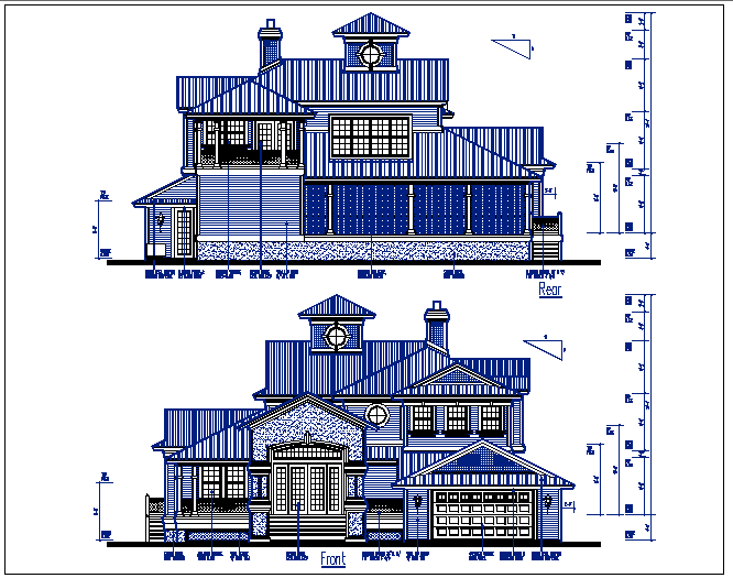 Plan and Elevation view of bungalow detail dwg file