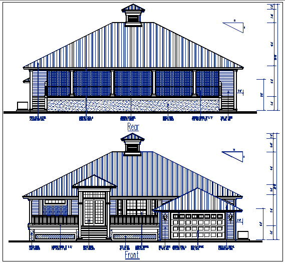Bungalow elevation view detail dwg file, Residential house elevation view detail with specification detail, door window and garage door elevation view detail specification, right elevation and left elevation view detail, dimension detail etc