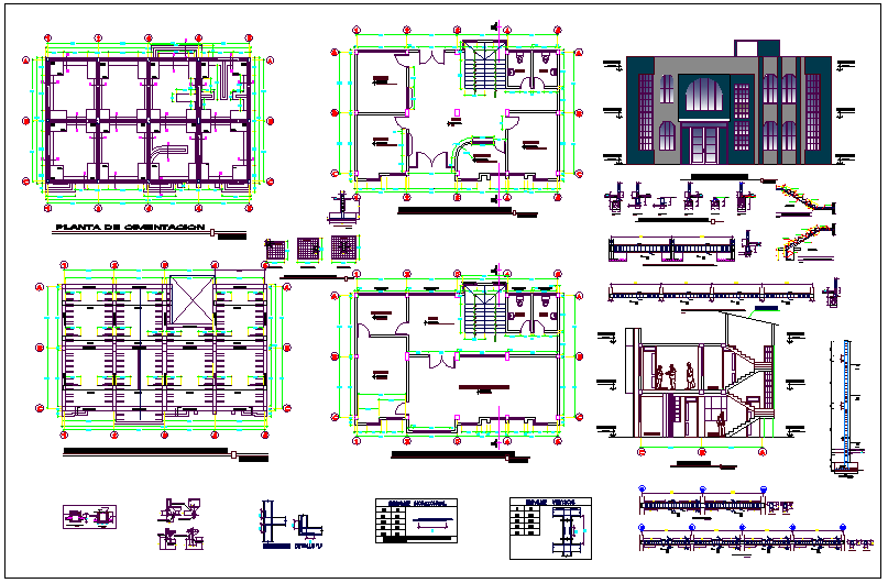 Municipal office building plan detail dwg file, Municipal office building plan detail anmd design plan layout detail with specifications detail, dimensions detail, elevation view, section view detail, structure member section plan detail, stair, beam column reinforcement detail etc