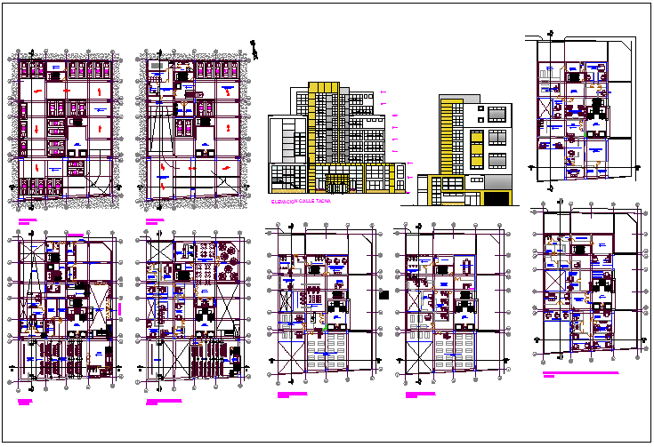 Office building plan view detail dwg file, Office building plan view detail and design plan layout detail view of each floor with specification detail, dimension detail, elevation and section view detail etc