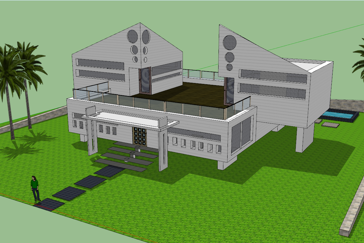 Bungalow 3d view skp file, Bungalow 3d view