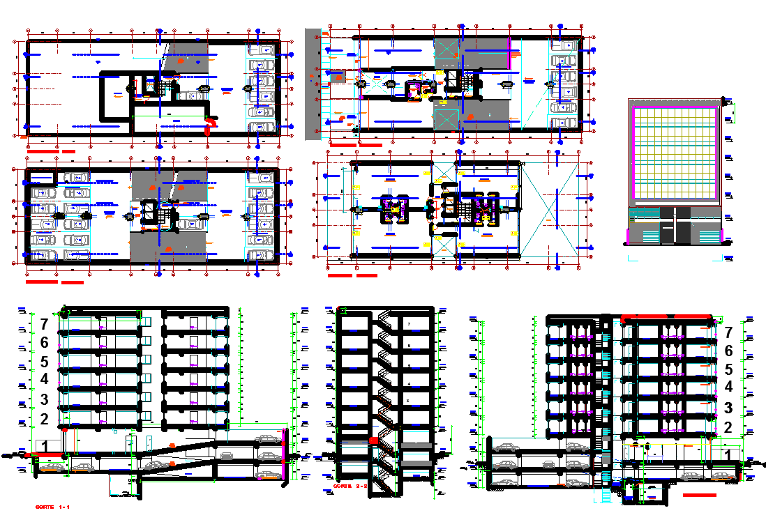Office building floor plan detail and section view detail dwg file