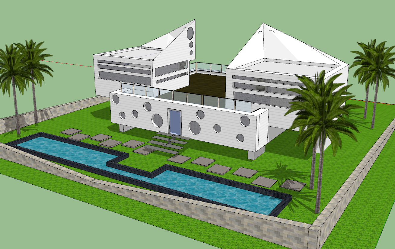 Bungalow 3d view skp file, Bungalow 3d view