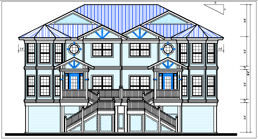 Bungalow elevation plan with dimension view detail dwg file, Bungalow elevation plan with dimension view detail with specification detail, door window elevation view detail specification, right elevation and left elevation view details, etc.