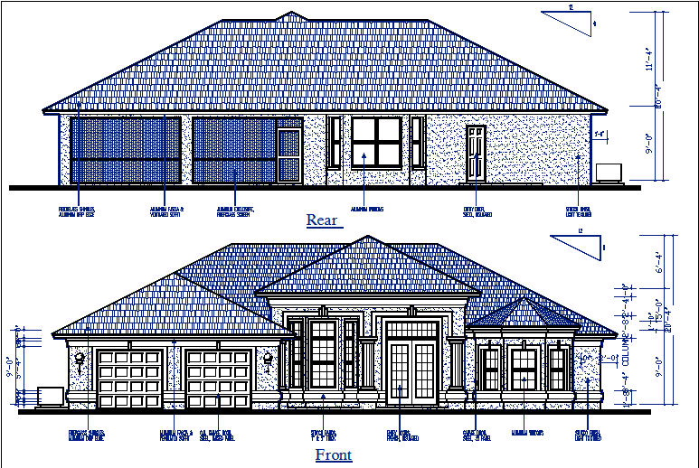 Front and rear elevation details with dimension details dwg files, Front and rear elevation details with dimension details, naming elevation door, window, light lamp, etc.