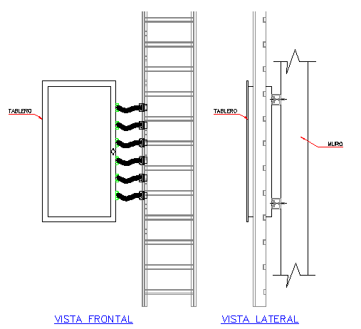 Detail connection board with cable tray design that includes a detailed view of front view, back view, cable details, board view and much more of cable tray design.