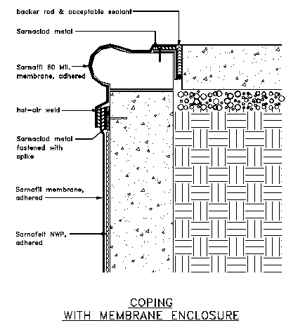 Top details of sports swimming pool that includes a detailed view of backer rod & acceptable sealant, Sarnaclad metal, membrane, adhered, hot-air weld, Sarnaclad metal fastened with spike, Sarnafil membrane, adhered and much more of swimming pool details.