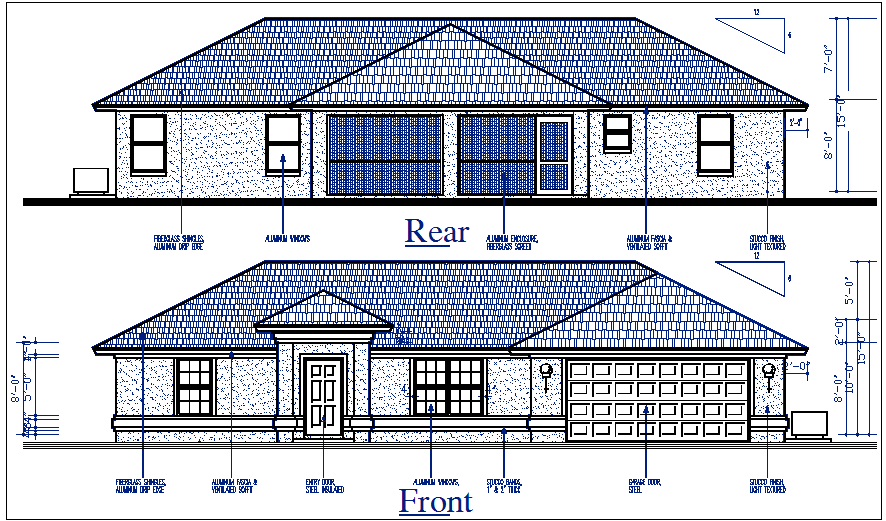 House plan elevation detail dwg file