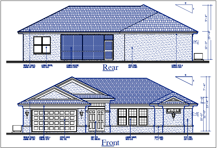 Front and rear elevation details with dimension details dwg files, Front and rear elevation details with dimension details, naming elevation door, window, light lamp, etc.