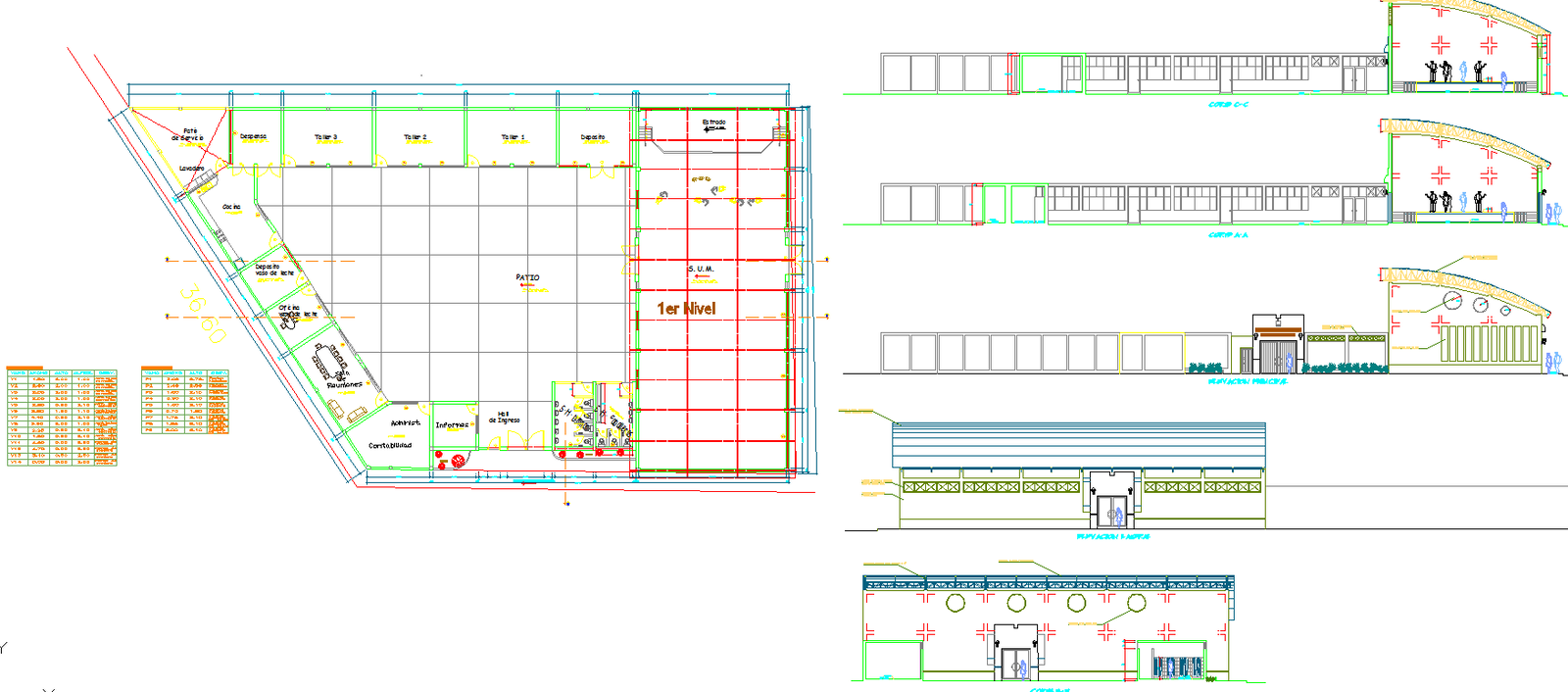 This 36.60m community center design DWG provides a complete architectural layout ideal for designers developing multipurpose public facilities. The uploaded drawing includes a detailed first-level plan featuring reception areas, administrative rooms, offices, storage spaces, a service patio, accessible toilet zones, circulation corridors, and a large open patio for community activities. The DWG also highlights a fully distributed S.U.M hall, utility rooms, and facility access points that ensure smooth user movement throughout the building. Sections and elevations display roof curvature, lighting placements, ventilation details, façade compositions, and structural wall layouts, giving architects complete clarity for construction and visualization.