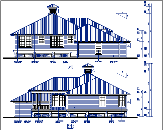 Structure elevation file Left and right elevation details with dimension details dwg files