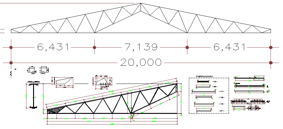 Roof construction details of building that includes material used details, wall construction details, supportive column construction details, cuts, joints, measurements and much more of roof construction detail.