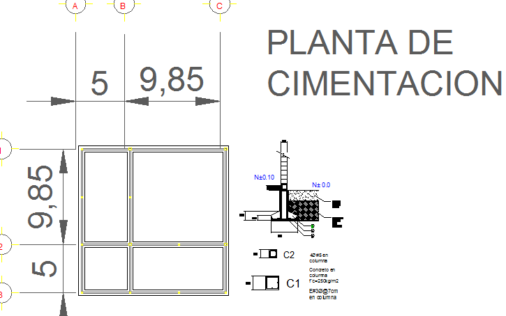 Construction details of building that includes a detailed view of concrete fc = 250k / cm2, load rod 3/8, temperature, column, Concrete column, Trash and vegetable layer, 0.5m excavation of resistant layer and much more of construction details.