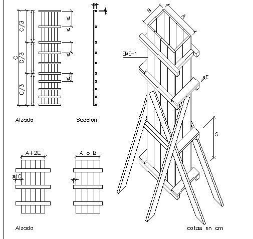 Four Costner form work details dwg file. Four Costner form work details that includes a detailed view of raised, dimensions in cm and much more of Costner details.