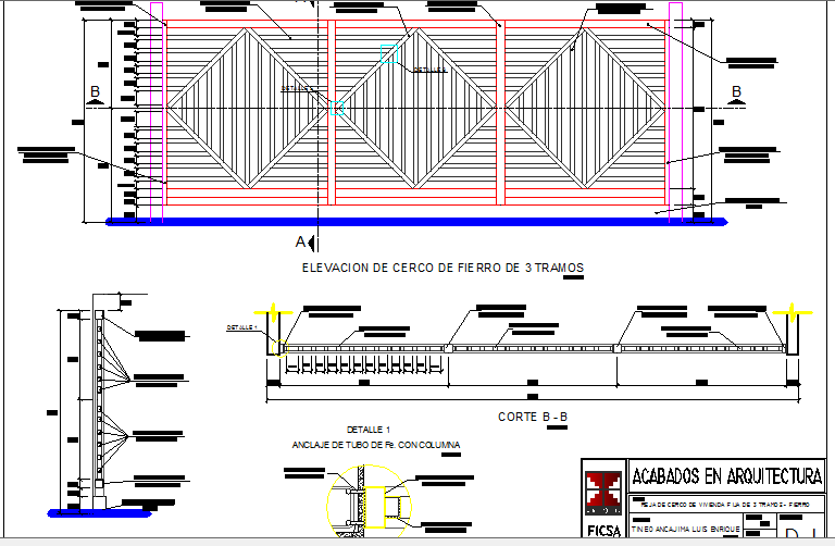 Iron fence installation details around the house that includes a detailed view of anchor of tube of faith with column, elevation of track iron fence, rectangular tube, tube of faith square and much more of iron fence details.