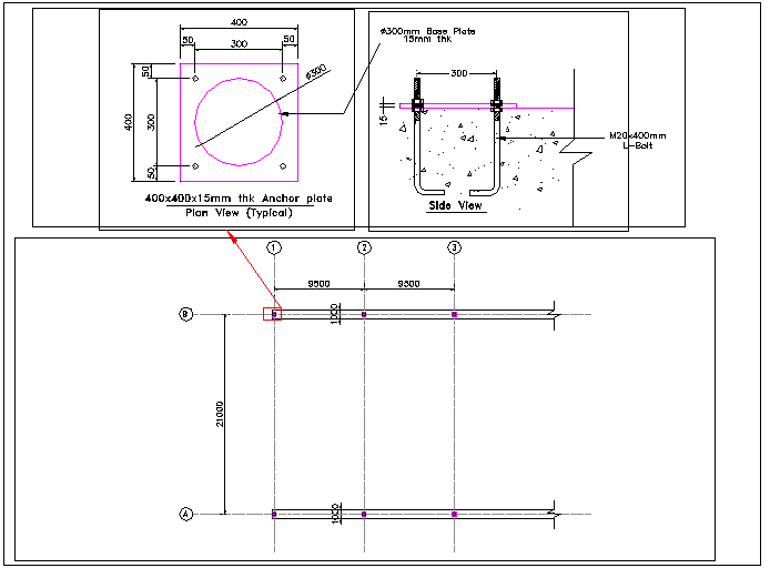 Anchor plate plan view and section view detail dwg file, Anchor plate plan view and section view detail with specification detail etc
