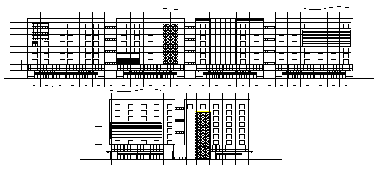 Here the Elevation design drawing of Flat design drawing with south side,north side,east side and west side elevation design drawing in this auto cad file.