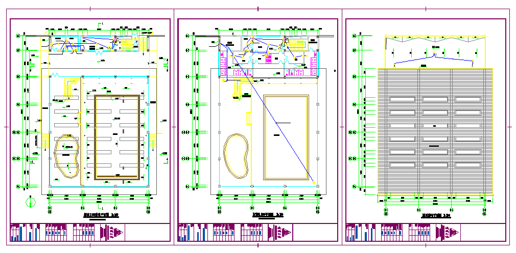 Weak level floor plan, elevation, Roof weak electricity floor plan, Second decoration design, Sauna room, counter, Children's splash pool, Over the pool etc detail.