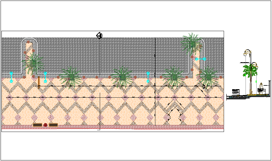 Paving design construction detail dwg file in plan with view of different types paving block view on floor with necessary dimension and view of tree with paving block view