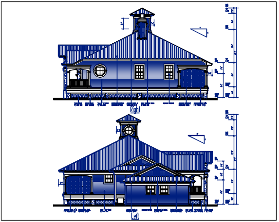 Structure elevation file Left and right elevation details with dimension details dwg files