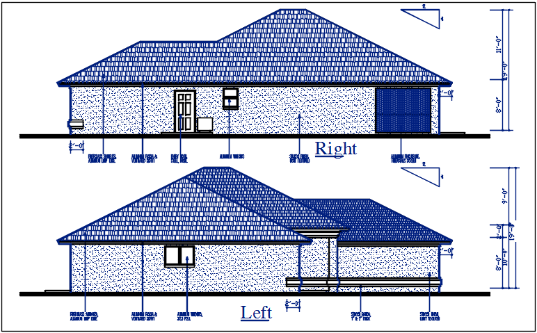 Left and right elevation details with dimension details dwg files, Left and right elevation details with dimension details, naming elevation door, window, light lamp, etc.