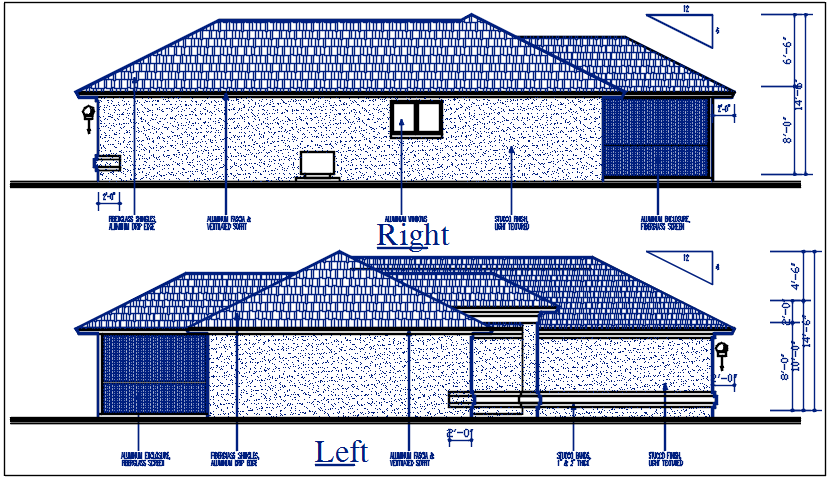 Left and right elevation details with dimension details dwg files, Left and right elevation details with dimension details, naming elevation door, window, light lamp, etc.