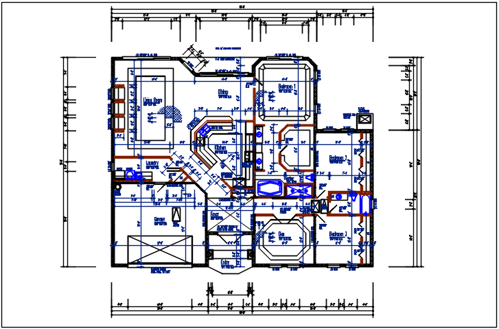 Bungalow planning detail dwg files, Bungalow planning detail entry, family room, dining room, living room, kitchen, bed room, etc.