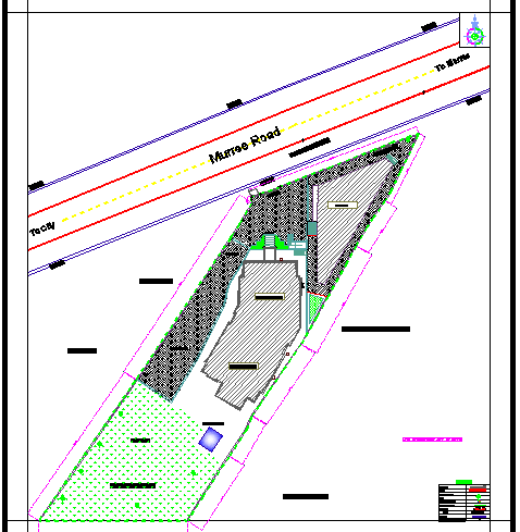 Site plan details of corporate building with landscaping dwg file.