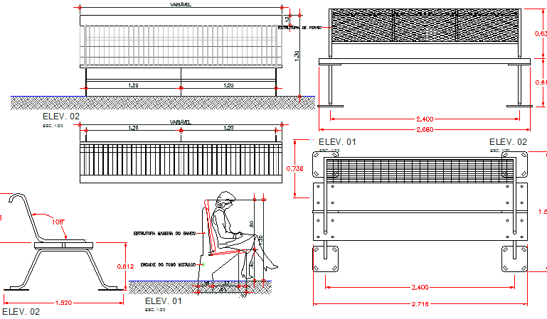 Garden elements details that includes a detailed view of chairs, benches, kids elements, garden decorative elements and much more of garden details.