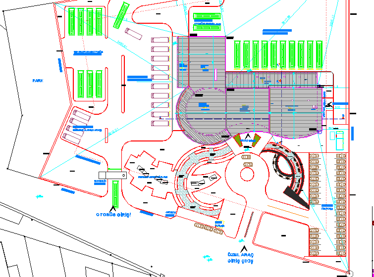 Busterminal AutoCAD Layout with Parking Bays Roads and Circulation