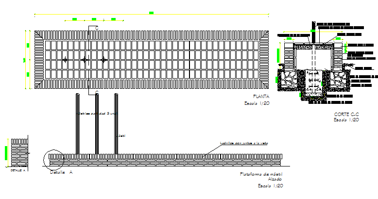 Mast platform construction details that includes a detailed view of Bricks with joints in sight, Base of H ° support of mast columns, cyclopedia foundation, Foundation of P.B.C., Stuffed padding, Leveling wall, Natural terrain and much much more of platform details.