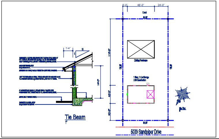 Tie beam plan section view detail dwg file, Tie beam plan section view detail with dimension detail, and direction arrow, hidden line plot size, etc.