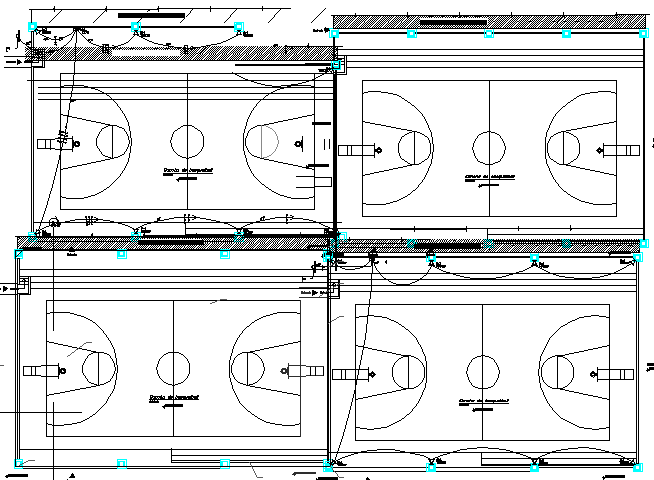 Metal frame work for basket ball court that includes pitch area, play area, basket ball stand, landscaping view, sports area and much more of basket ball court details.